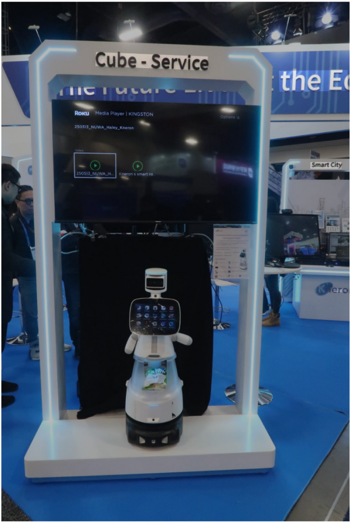 智慧機器人與居家安防:攜手合作夥伴NUWA推出的家庭機器人,整合多模態邊緣 AI 模組,支援互動對話、巡邏監控、視訊通話,並延伸至居家安全、健康照護、教育輔助與情感陪伴等應用。