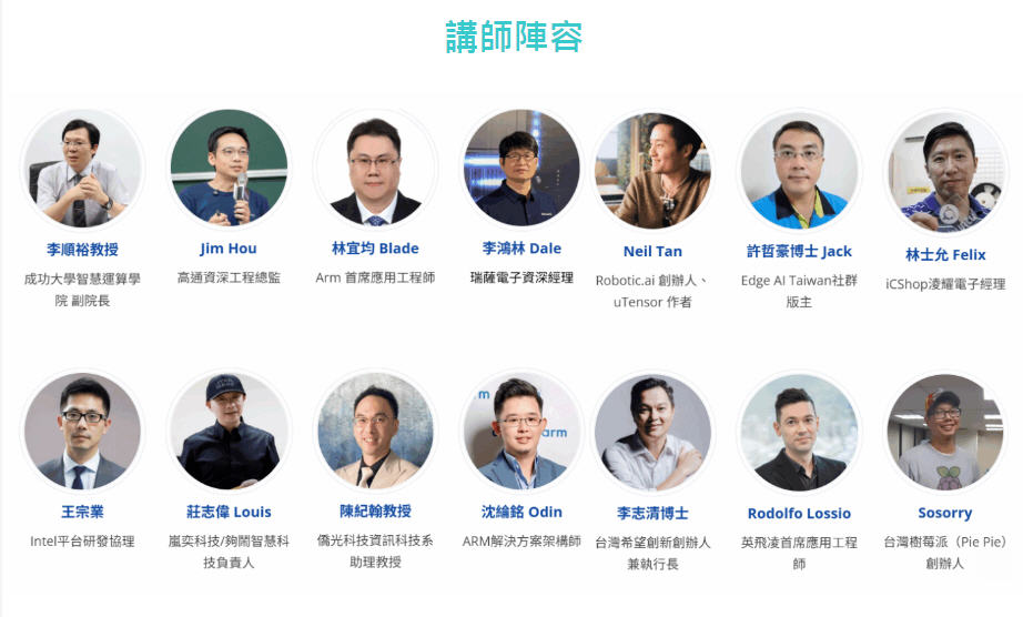 - 上午「大師開講」、下午「Track C/ Edge AI前瞻技術講座」及「Track D/ Edge AI開發實務講座」為免費講座